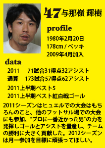 | 獲得タイトル | 11年上半期ベスト5 11年上半期 ベスト紅白戦ゴール |